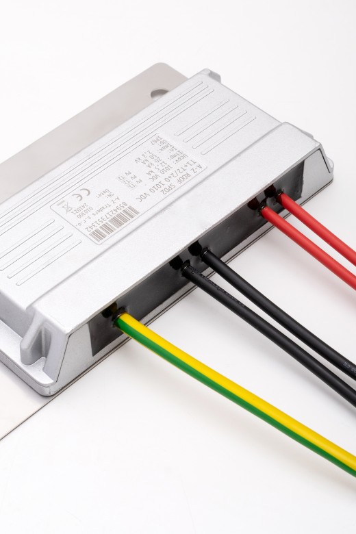 Die Einheit ist als Durchgangseinheit zur einfachen Implementierung in einen String konzipiert - beide Pole des Strings werden an die Einheit angeschlossen und beide treten auch wieder aus. Der Anschluss erfolgt über klassische MC4-Stecker (mit integrierter Sicherung am Eingang) und Drähte mit einem Querschnitt von 6 mm² (in einigen Versionen sogar 10 mm² ) mit doppelter Isolierung und Farbcodierung.