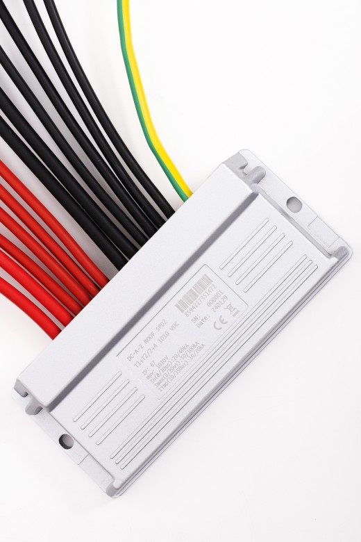 Die Einheit ist als Durchgangseinheit zur einfachen Implementierung in einen String konzipiert - beide Pole des Strings werden an die Einheit angeschlossen und beide treten auch wieder aus. Der Anschluss erfolgt über klassische MC4-Stecker (mit integrierter Sicherung am Eingang) und Drähte mit einem Querschnitt von 6 mm² (in einigen Versionen sogar 10 mm² ) mit doppelter Isolierung und Farbcodierung.