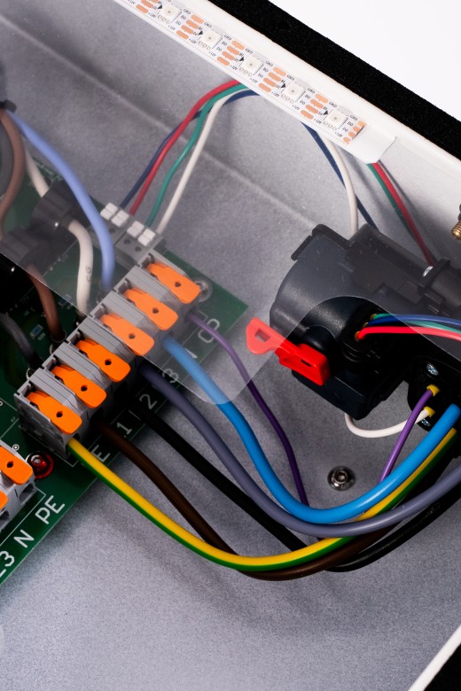 Sicherungsketten vom Dach des Gebäudes, inklusive Leistungsschalter und 4P-Schalter zur manuellen Notstromschaltung – entweder des gesamten Hauses oder ausgewählter Teile davon.