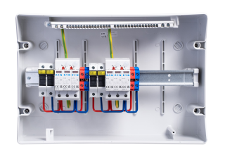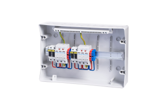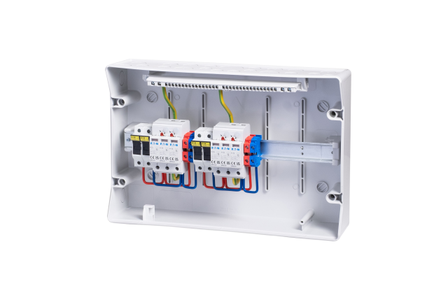 EATON IKA-1/18-ST-Schalttafel, EATON SPPVT12-10-2+PE- oder EATON SPPVT2-10-2+PE-Überspannungsableiter. EATON CHPV2U-Sicherungslasttrennschalter einschließlich EATON PV15A10F gPV-Sicherungen.