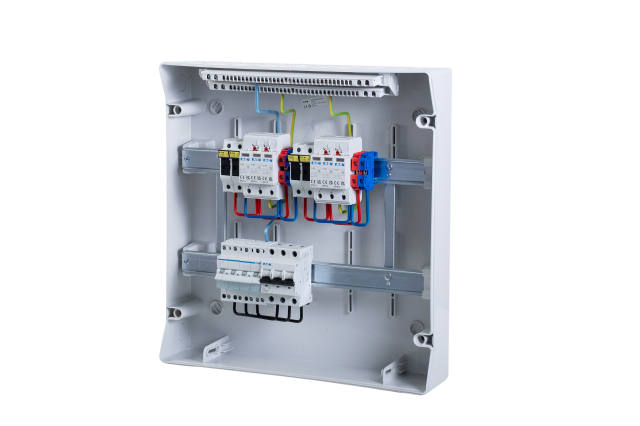AC+DC-Schalttafeln für die Wandmontage, IP65, dienen zum Betrieb einer dreiphasigen Photovoltaikanlage in Kombination mit einem Schalter (typischerweise ein GoodWe 4 bis 10K-ET Wechselrichter).