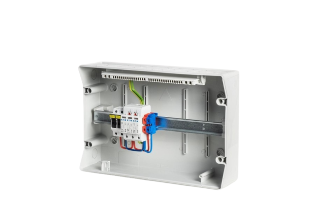 Die Schaltanlage ist mit einem DC-Überspannungsableiter mit Sicherungstrennschaltern einschließlich gPV-Sicherungen zum Schutz des DC-Eingangs des Wechselrichters ausgestattet.