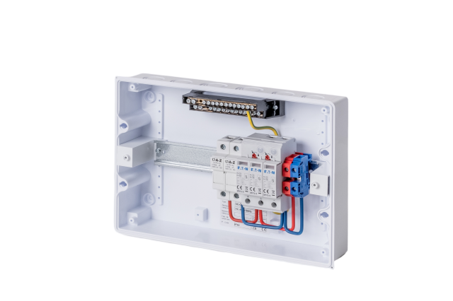 Schalttafel BC-O-1/12-ECO, Überspannungsableiter EATON SPPVT12-10-2+PE oder EATON SPPVT2-10-2+PE. Sicherungslasttrennschalter EATON CHPV2U einschließlich gPV-Sicherungen EATON PV15A10F.